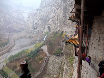 The wooden props appear outside are not the main and actual supporting structure of the temple. The artisans took full advantage of the natural rock and applied some mechanical principal theory to construct this strong yet wonderful rare structure with their incredible wisdom. It is indeed a great architectural and cultural achievement of Chinese people.